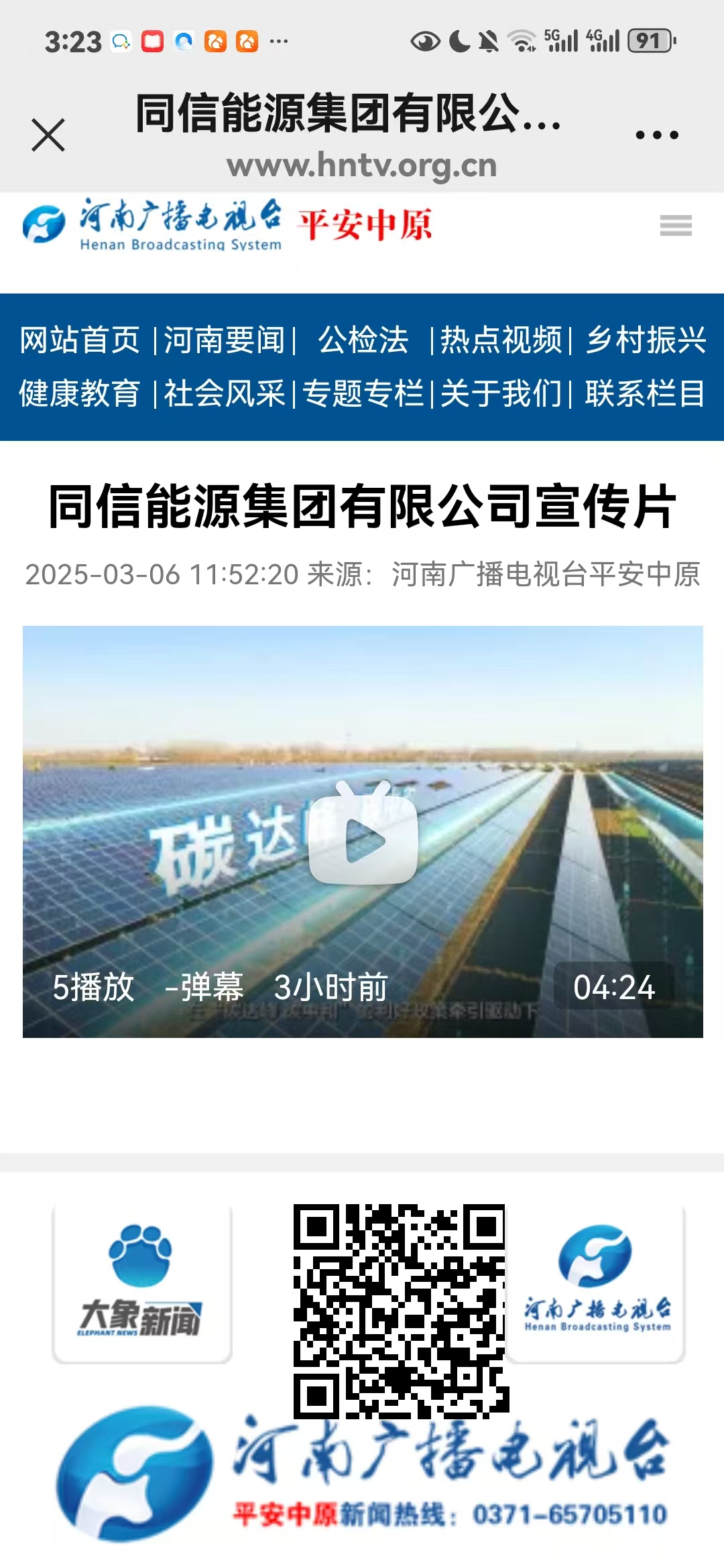 同信能源企业宣传片《同心致富,信赢未来》在河南电视台《平安中原》栏目热播 近日,由同信能源集团精心制作的企业宣传片《同心致富,信赢未来》在河南电视台《平安中原》栏目正