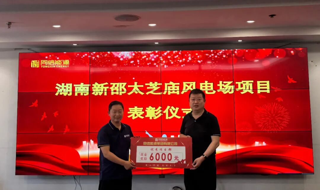 为表彰太芝庙风电场项目全体干部员工勇于担当、敬业奉献精神,集团公司决定给予太芝庙项目部奖励6000元、工程一公司奖励4000元。