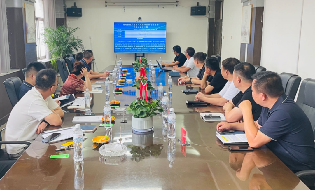 杨永花等考察组成员观看了集团公司简介PPT,重点了解了同信能源在升压站、集电线路设计施工能力和主要业绩,就项目安全质量管理、人员配置、线路、升压站设计等进行了探讨。